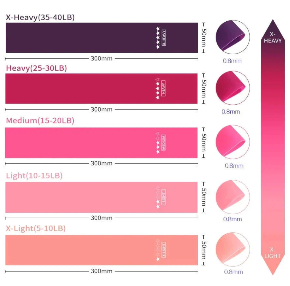 Elastic Resistance Bands Set for Yoga, Pilates, and Strength Training - 5-Pack